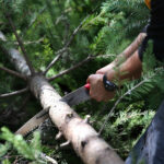 The day starts with a morning caravan up to the preserve, where drizzle often descends and dew is still visible on the forest floor. Pauline Hsu, who brought her two young children to last year’s hunt to cut down a live tree for the first time, says her family loved learning about the different species in the forest, including a massive lion’s mane mushroom they spotted.