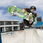 Stess’s Olympic event, Park Skate, takes place on a bowl-shaped course with sloping ramps, quarter pipes and bumps in a test of speed, momentum and aerial maneuvers. It differs from the other Olympic skateboarding event, Street Skate, in the type of obstacles. Both Park and Street skateboarding were added to the Olympic roster for the 2020 Tokyo games.