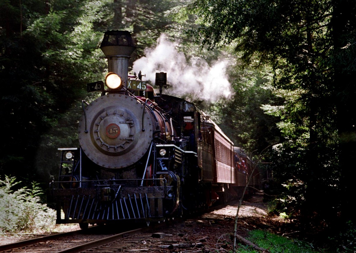 The “Super Skunk” — a Baldwin-built steam locomotive No.45 — now powers excursion trains through majestic redwood forests, scenic mountain meadows and over 30 trestles bridging the mountain waters of Northern California.